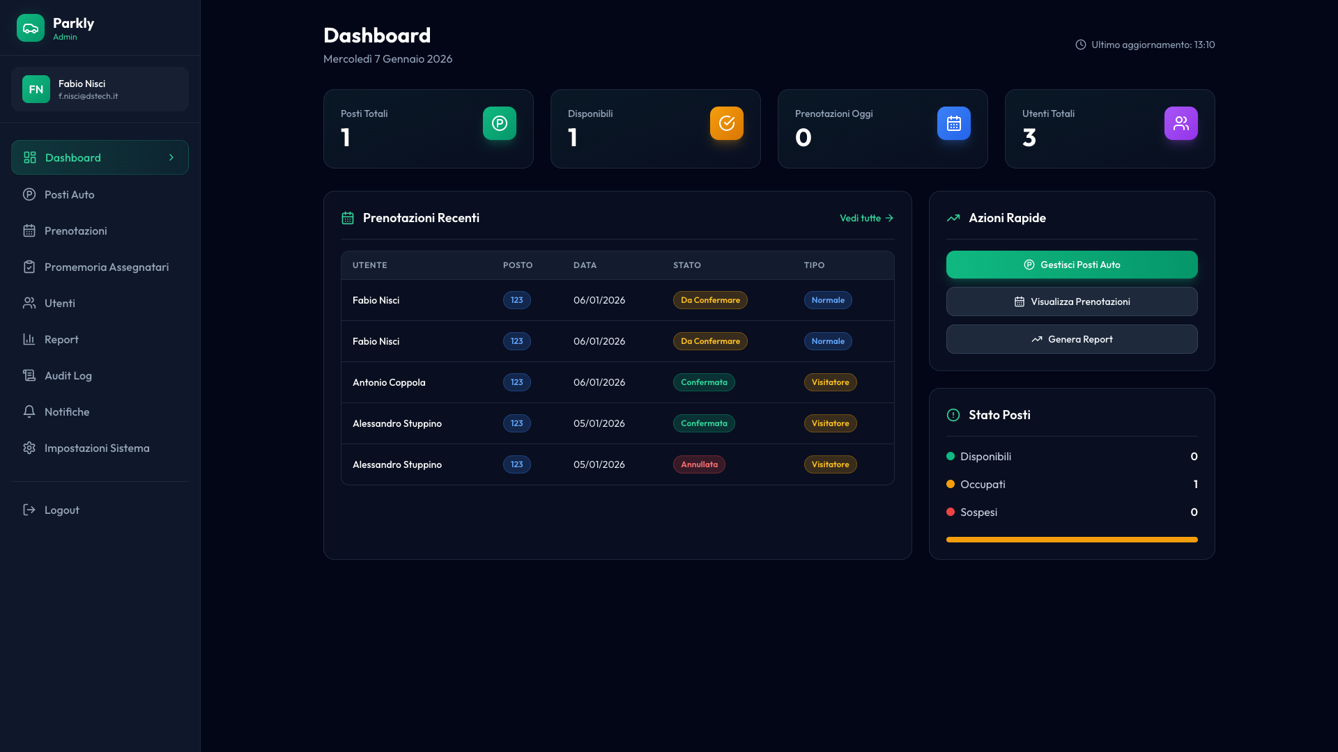 info email | Demo admin dashboard